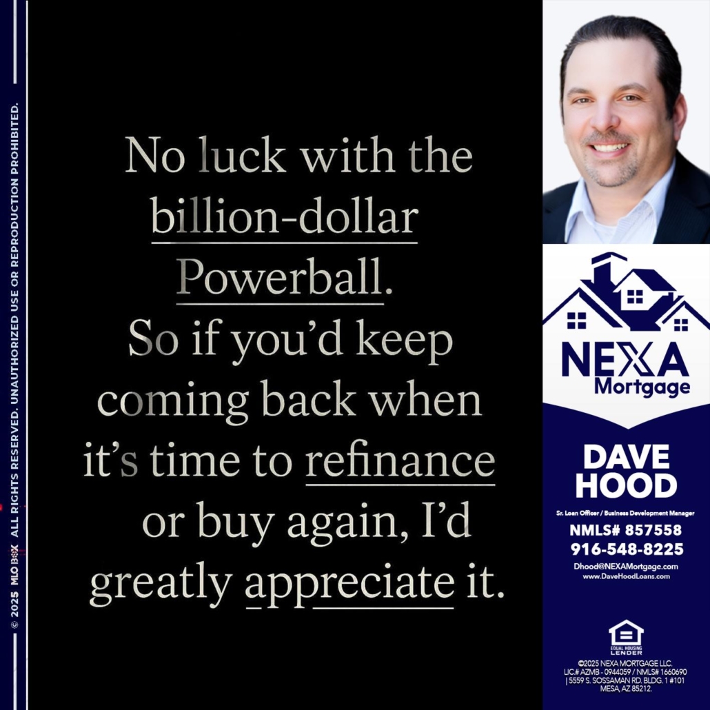 NO LUCK WITH - Dave Hood -Sr. Loan Officer / Business Development ManagerHi, my name is Dave Hood. I’m a Loan Officer with NEXA Mortgage LLC., offering personalized mortgage solutions, fast customized quotes, great rates and service with integrity.