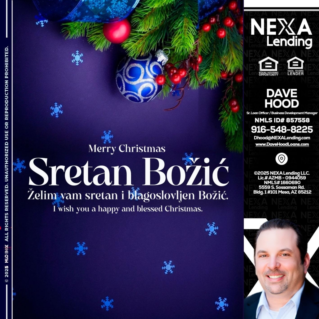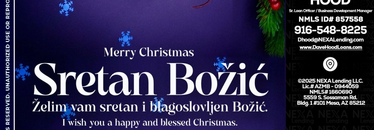 Sretan Božić - Dave Hood -Sr. Loan Officer / Business Development ManagerHi, my name is Dave Hood. I’m a Loan Officer with NEXA Lending LLC., offering personalized mortgage solutions, fast customized quotes, great rates and service with integrity.